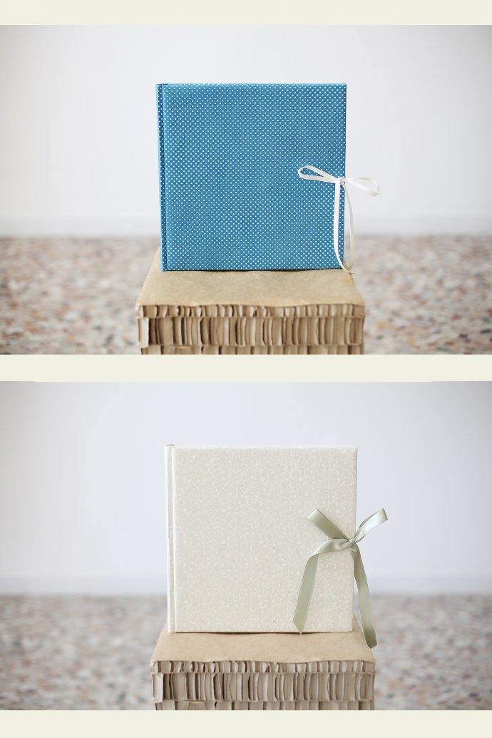 Album artigianale, interni avorio con velina, pagina spessa. Dimensioni massime 25×25. Pensati per parenti e amici. Ampia scelta di materiali e fantasie per la copertina (sezione album wild).